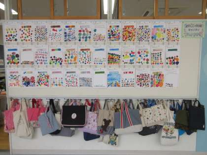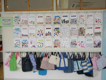 3年生の廊下の掲示は、「おいしい100味キャンディ」です。赤、青、黄色の3色の絵の具のみで描いたとありますので、色を混ぜて、新たな色を作り出す楽しさを味わった証ということになりますね。まずは、1・2組です。