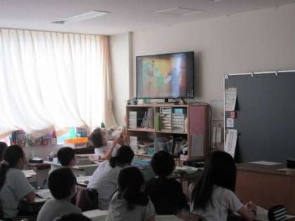6年3組の日本語の授業です。本来ならば、古典芸能鑑賞教室で実際に狂言の舞台を鑑賞するはずでしたが、3ヶ月の臨時休業が続いてしまったために、教室で動画を観るという授業となりました。とはいえ、さすが芦花小学校の6年生。先生の説明をよく聞き、狂言「附子」のおもしろさをしっかりと感じ、学んでいました。新聞作りも、なぜ700年にわたって日本の伝統として現代に受け継がれているのかという視点をもちながら、これから数時間かけて新聞作りに取り組んでいくことになります。