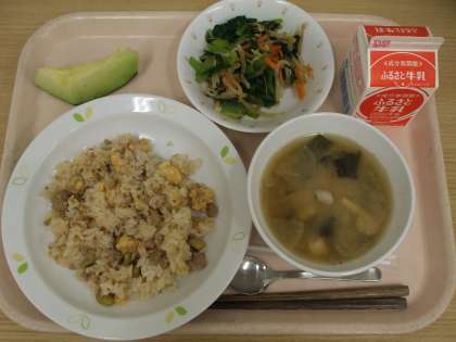 米(山形)、豚ひき肉・鶏肉・鶏卵(青森)、豆腐(東京)、油揚げ(神奈川)、カットわかめ(韓国)、青大豆(山形)、にんじん・さつまいも・ねぎ(千葉)、ごぼう(群馬)、大根(北海道)、小松菜(茨城)、もやし(栃木)、メロン(茨城・熊本)