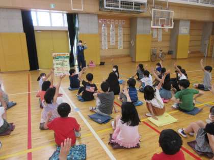 1〜4校時に、体育館で、成城警察署の警察官の方をお招きして自転車教室が開催されました。