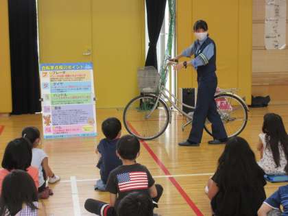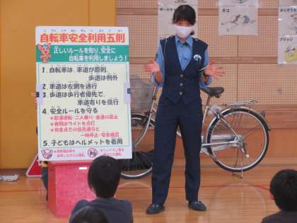 まず、自転車は原則、車道を通るべき「車」であることなど、「自転車安全利用五則」を分かりやすくご指導いただきました。