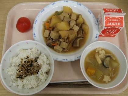 給食の煮物は“だし”をきかせて、調味料を使い過ぎないようにして作っています。今日はじゃがいもの使用量が100Kgを超えているところが、とにかく大変でした。