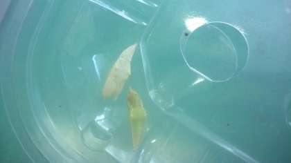 1匹目のさなぎの抜け殻の近くに2匹目のさなぎができて成虫になる準備をしています。今朝、その色がだんだんと変わってきていました。補習の時間帯に、成虫になってくれるのか楽しみです。