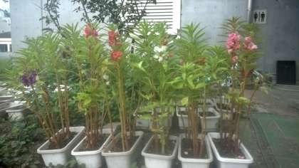 写真の1、2枚目はヒマワリ、3枚目はホウセンカです。