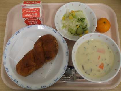 ミルクパン(東京)、ベーコン(日本・デンマーク)、冷凍鶏ガラ(神奈川)、白糸だら(ノルウェー)、バター(北海道)、豆乳(愛知)、クリームコーン・ホールコーン(北海道)、マッシュルーム水煮(岡山)、冷凍みかん(和歌山)、たまねぎ・にんじん・じゃがいも(北海道)、パセリ・りんご(長野)、キャベツ(群馬)、きゅうり(秋田)、大根(青森)