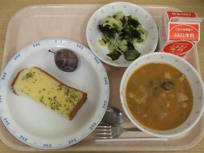 今日のデザートを一目見て、「大きい!」とびっくりした様子の1年生。初めてプルーンにチャレンジした子もいたようです。ドライプルーンとは少し違い、甘酸っぱい味がしましたね。