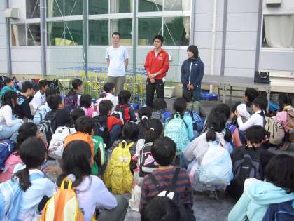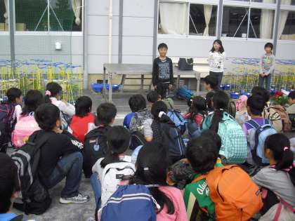 川場移動教室から帰ってきた5年生の帰校式の様子です。渡部校長をはじめ、引率した先生方の話から、充実した活動の3日間であったことが伝わってきました。子どもたちも思い返すように先生方のお話を聞いています。