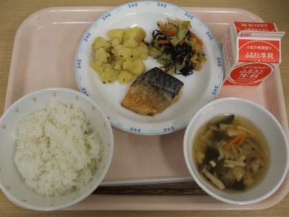 米(山形)、豚肉(北海道)、さば(欧州)、油揚げ(神奈川)、刻みのり(兵庫)、たけのこ水煮(福岡・熊本・鹿児島・宮崎)、にんじん・大根・じゃがいも(北海道)、しめじ・パセリ(長野)、ねぎ(青森)、小松菜・キャベツ(群馬)、もやし(栃木)