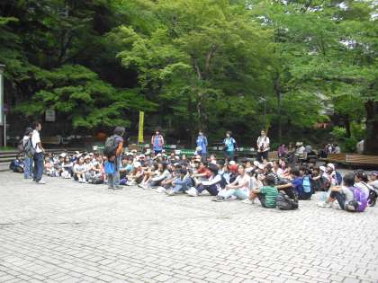 ケーブルカーの清滝駅前の最後のチェックポイントで下山の報告です。全員が無事に下山しました。友達と励まし合いながら、高尾山の自然を満喫した一日でした。