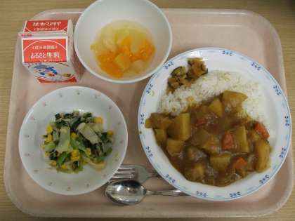 今日のカレーライスは、角切りの豚肉を使ったポークカレーです。バターの風味とたまねぎの甘味が口の中で広がる、優しい感じのカレーライスでした。