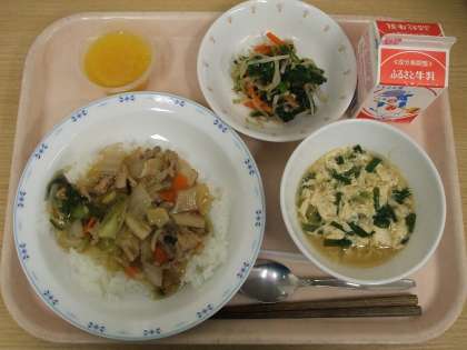 米(山形)、豚肉(北海道)、鶏卵・いか(青森)、豆腐(東京)、白ごま(スーダン・パラグアイ)、粉寒天(南米・地中海)、オレンジジュース(メキシコ)、たけのこ水煮(福岡・熊本・鹿児島・宮崎)、にんにく・ねぎ(青森)、しょうが(高知)、にんじん・たまねぎ(北海道)、白菜(長野)、チンゲンツァイ(茨城)、にら・もやし(栃木)、小松菜(群馬)、干しいたけ(九州)