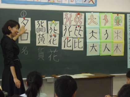 4年生の教科「日本語」の授業の様子です。「漢字の成り立ち」について学習しているところです。漢字を組み合わせると新しい漢字が生まれることやその意味を考える内容です。新しい発見に子どもたちも喜んでいました。