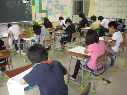 放課後に行った漢字検定の様子です。今回は、10級から2級・準2級までを保護者、中学生、小学生と合わせて84名が受けました。1時間をかけて問題に取り組みました。