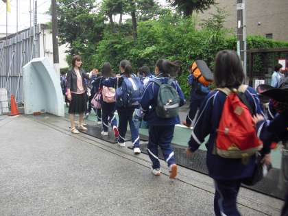 いよいよ出発です。生徒たちは南門からバスの待つ環八まで歩きます。渡部校長も南門で見送りです。小学生も「いってらっしゃい」と声をかけていました。すばらしい移動教室となるように願っています。
