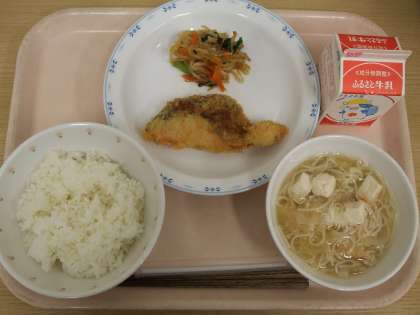 今日はサクッと揚がった「鮭フライ」が人気でした。衣に乾燥パン粉と生パン粉を合わせて使うことで、サクサク感がアップしています。