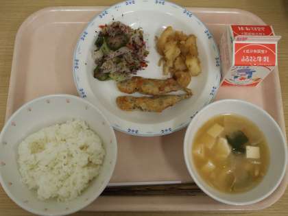 米(山形)、小あじ(鹿児島)、豆腐(東京)、油揚げ(神奈川)、糸けずり(鹿児島・静岡)、にんにく(高知)、じゃがいも・たまねぎ・にんじん(北海道)、キャベツ(茨城)、きゅうり(埼玉)、大根(岩手)、ねぎ(青森)、小松菜(群馬)
