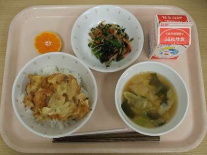 今日は、甘辛い“天つゆ”をかけた「かき揚げ丼」です。かき揚げには、たまねぎ、ちくわ、さつまいも、ごぼうなど、いろいろな具材を使っています。揚げている途中でバラバラにならないよう、1つずつ丁寧に作っていきました。