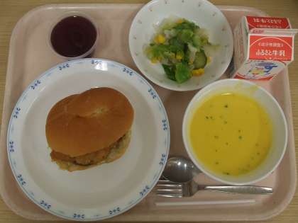うず巻きパン(東京)、メルルーサ(アルゼンチン)、冷凍鶏ガラ(神奈川)、バター(北海道・宮崎)、米(山形)、生パン粉(岡山)、豆乳(愛知)、生クリーム(北海道)、粉寒天(南米・地中海)、ぶどうジュース(チリ)、ホールコーン・たまねぎ・かぼちゃ(北海道)、キャベツ・きゅうり(群馬)、パセリ(茨城)、レタス(長野)、大根(千葉)、りんご(青森)