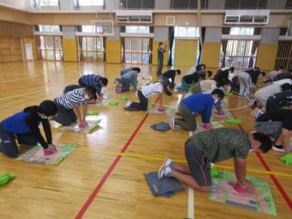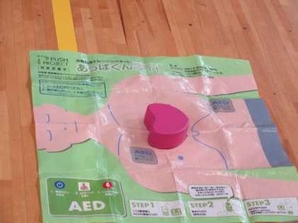 心臓マッサージによる心肺蘇生やAEDの使い方など、大人でもなかなか難しい内容を6年生の子供たちはしっかりと理解して取り組んでいました。