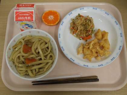 冷凍うどん(福岡)、豚肉(青森)、ハム(埼玉・群馬・茨城)、鶏卵(青森)、油揚げ(神奈川)、みかん(広島)、たまねぎ・にんじん・じゃがいも(北海道)、ねぎ(新潟)、もやし(栃木)、きゅうり(群馬)、切干し大根(宮崎)