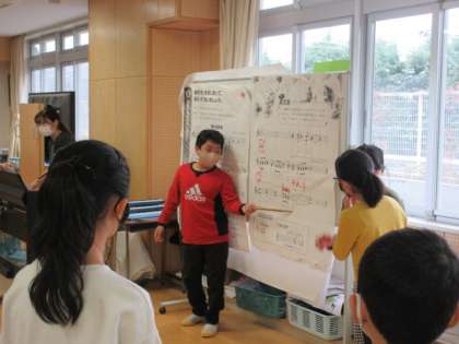 授業の前半は、鑑賞で「待ちぼうけ」の曲を聴き、1番から5番までがどのように歌われているのかを考えました。ゆっくりとか、テンポが速いとか、感情が込められているとか…。2組の子供たちは真剣に発表していました。