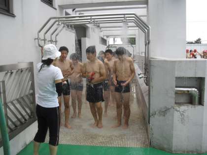 4年生のプール開きの様子です。代表の児童がプールのめあてを発表しました。どの子も意欲的な内容でした。めあてに向かって努力していきます。6年生は気持ちよさそうにシャワーを浴びていました。