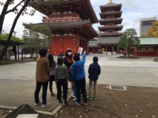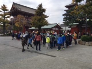 浅草寺に到着しました。とても空いています。これからグループごとにボランティアガイドさんが案内をしてくださいます。