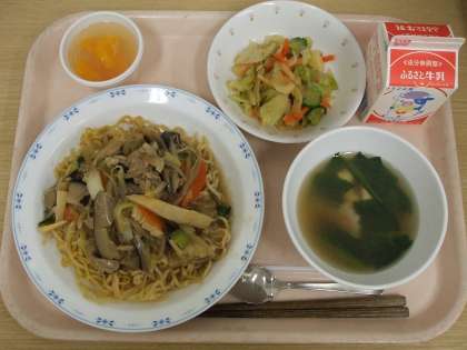 蒸し中華麺(東京)、豚肉(北海道)、冷凍鶏ガラ(神奈川)、いか(青森)、豆腐(東京)、なると(静岡)、白ごま(スーダン・パラグアイ)、粉寒天(南米・地中海)、みかん缶(国産)、たけのこ水煮(福岡・熊本・鹿児島・宮崎)、ホールコーン・たまねぎ(北海道)、しょうが(高知)、にんにく(青森)、にんじん・ねぎ(千葉)、白菜・チンゲンツァイ(茨城)、もやし(栃木)、小松菜(埼玉)、キャベツ(愛知)、きゅうり(群馬)、大根(神奈川)、干しいたけ(九州)