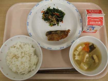 今日の汁物には、中国・四国・九州地方で多く生産されている「麦みそ」を使っています。やさしい甘さの汁物に仕上がりました。具材にかくれて、麦麹のすがたがチラッと見えましたね。