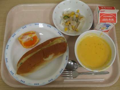 マーガリンパン(東京)、ハム(埼玉・群馬・茨城)、冷凍鶏ガラ(神奈川)、米(茨城)、ツナ(静岡)、白いんげん豆・生クリーム・バター(北海道)、シュレッドチーズ(北海道)、豆乳(千葉)、ホールコーン・たまねぎ・じゃがいも(北海道)、早香(熊本)、パセリ(香川)、にんじん・大根(千葉)、きゅうり(宮崎)、レモン(愛媛)