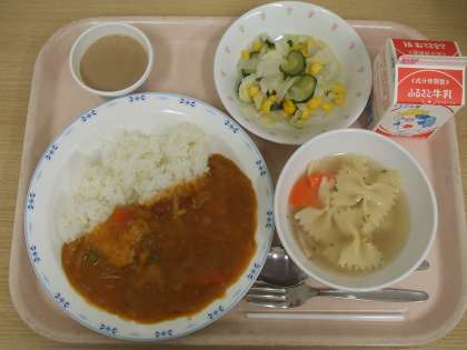 米(茨城)、豚肉(北海道)、冷凍鶏ガラ(神奈川)、ベーコン(日本・デンマーク)、ひよこ豆(アメリカ)、生クリーム(北海道)、豆乳(千葉)、マカロニ・ダイストマト(イタリア)、マッシュルーム水煮(山形)、冷凍グリンピース(ニュージーランド)、ホールコーン・たまねぎ・じゃがいも(北海道)、にんじん・大根(千葉)、パセリ(茨城)、キャベツ(愛知)、きゅうり(宮崎)、りんご(青森)