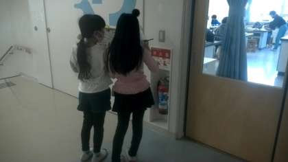 今週は各学級で、校内の消防施設を調べる活動を行いました。