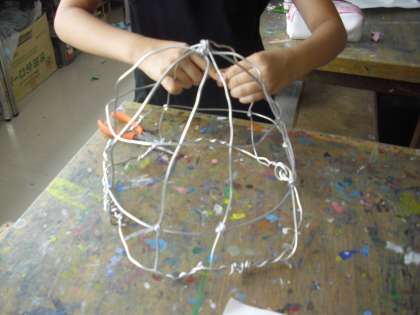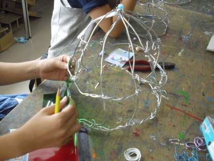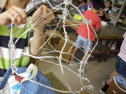 5年生の図画工作の授業の様子です。光のファンタジーの制作に取り組んでいるところです。針金の骨組みづくりも進み、イメージしたランプの形に近づいてきました。和紙や色セロファン等を使って装飾していきます。