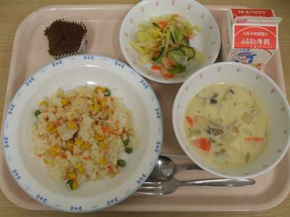 米(茨城)、鶏肉(青森)、冷凍鶏ガラ(神奈川)、白糸だら(アラスカ)、ベーコン(日本・デンマーク)、おから(東京)、豆乳(愛知)、バター(北海道・宮崎)、米粉(埼玉)、ホールコーン・クリームコーン・たまねぎ・じゃがいも(北海道)、冷凍グリンピース(ニュージーランド)、マッシュルーム水煮(岡山)、にんじん・パセリ(千葉)、キャベツ(愛知)、きゅうり(宮崎)、大根(神奈川)、りんご(青森)