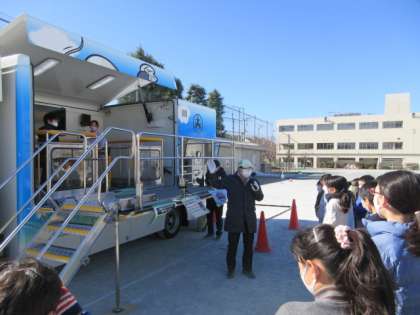 4年生が起震車体験をしました。東日本大震災は今から約10年ほど前に発生しましたが、今の4年生はその年に生まれたかまだ生まれていないかの時のことなので、身をもって体験するのは、こうした機会がとても大切なのです。震度5〜7は、子供では立っていられない状況になりますから、いかに自分の身の安全を自分で確保するかがとても大切なのです。