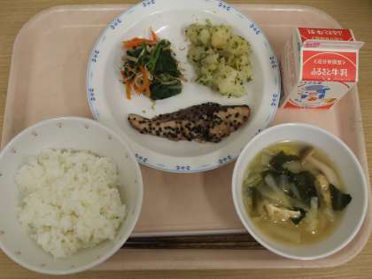 南部焼きの“南部”とは、「ごま」を使った料理につける名称です。南部せんべいや南部鉄器で有名な南部地方(現在の岩手県と青森県にまたがる地方)がごまの名産地であることに由来しています。今日は出世魚の一つ、ぶり(いなだ)に黒ごまをふって焼き物にしました。
