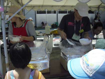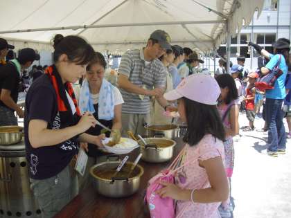 訓練の後は、お昼ご飯です。朝から準備してくださったおいしいカレーライスです。お米はアルファ米です。PTAのみなさん、ありがとうございました。子どもたちにとって楽しい一日となりました。