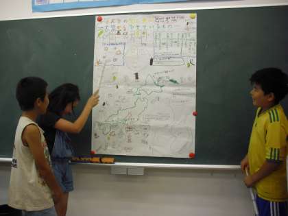 4年生の総合的な学習の時間の様子です。4年生は、総合的な学習の時間に「大豆」をテーマとした学習を進めています。この時間はグループ毎に調べた内容について発表し合いました。