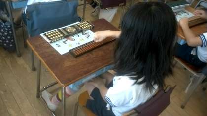 2日目の今日は、実際にそろばんを使って、たし方やひき方の練習をしました。