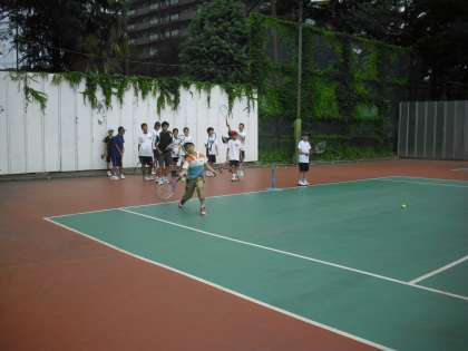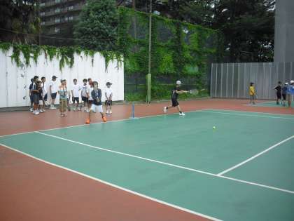 中学生といっしょに、トスを出してもらったボールを打ち返す練習です。「お願いします」「ありがとうございました」と中学生と同じようにあいさつをしながら参加しました。