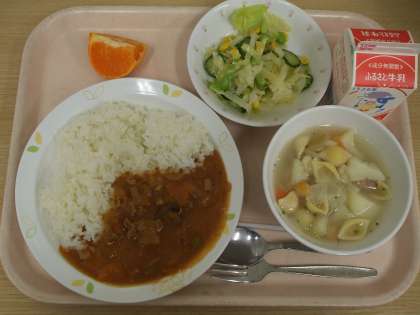 米(茨城)、豚肉・鶏肉(北海道)、冷凍鶏ガラ(神奈川)、ベーコン(日本・デンマーク)、バター(北海道)、マカロニ(アメリカ・カナダ)、ひよこ豆(アメリカ)、マッシュルーム水煮(岡山)、ダイストマト(イタリア)、冷凍グリンピース(ニュージーランド)、冷凍枝豆・ホールコーン・たまねぎ・じゃがいも(北海道)、にんじん(徳島)、パセリ(香川)、きゅうり(埼玉)、キャベツ(愛知)、せとか(愛媛)