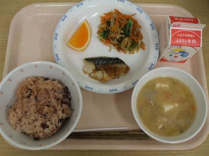 今年度の給食最終日です。6年生の卒業、1〜5年生の修了を祝って、「赤飯」を炊きました。