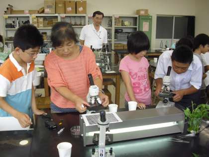 顕微鏡の扱い方だけでなく、不思議な科学の世界をのぞくことができました。最後は、ペットボトルとガラス玉で作った簡易顕微鏡をお土産にいただきました。