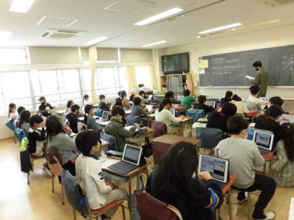 タブレットを活用して、東京都の区市町村について調べていました。東京都には23区だけではなく、村、町及び島しょ部があることを知り、驚いていました。東京都のどこに世田谷区が位置しているのかについても理解し、地形について関心を高めていました。