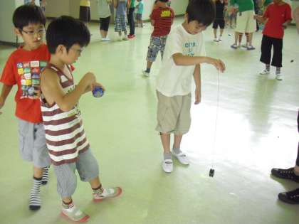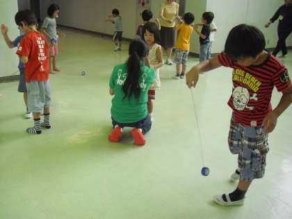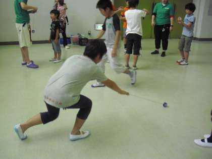 さあ、練習開始です。4名の講師が巡回して子どもたちに教えてくれます。早くもコツを習得し、技に挑戦している人もいます。なかなか上手です。