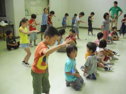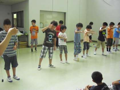 最後に成果を確かめ合いました。1年から3年までは、基本の動きとなるグラビティ・プルができるかどうかを行いました。4年生以上は、スリーブ(空転)長さを競いました。