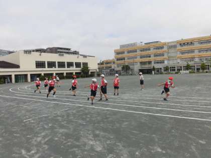5月6日(木)2校時、校庭では6年1組の子供たちがリレーの学習をしていました。