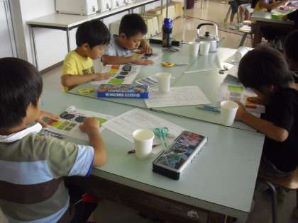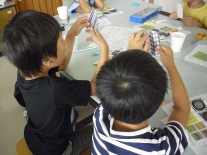 違う色のはずなのに、紙を折り重ねてみると同じ色でした。また、子どもたちはその不思議に興味をもって取り組んでいました。