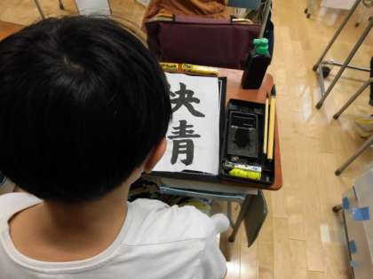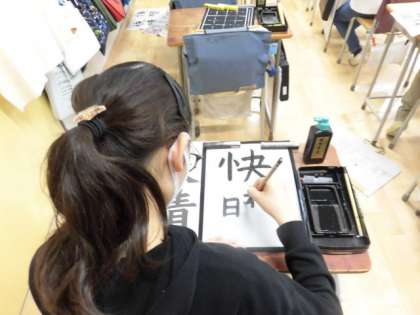 つながりを意識しながら、一画一画を力強く、ていねいに書く姿が印象的でした。自分が納得のいく作品ができたと思います。よくがんばりましたね。