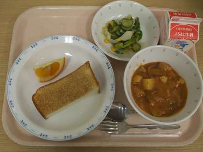 ミルク食パン(東京)、豚肉・豚ひき肉(北海道)、冷凍鶏ガラ(神奈川)、バター(北海道)、粉チーズ(大阪)、白すりごま(ナイジェリア・パラグアイ)、ひよこ豆(アメリカ)、マッシュルーム水煮(岡山)、ダイストマト(イタリア)、ホールコーン・たまねぎ(北海道)、甘夏みかん(鹿児島)、ピーマン・パセリ・キャベツ(茨城)、にんじん(徳島)、じゃがいも(長崎)、きゅうり(埼玉)、アスパラガス(栃木)、りんご(青森)